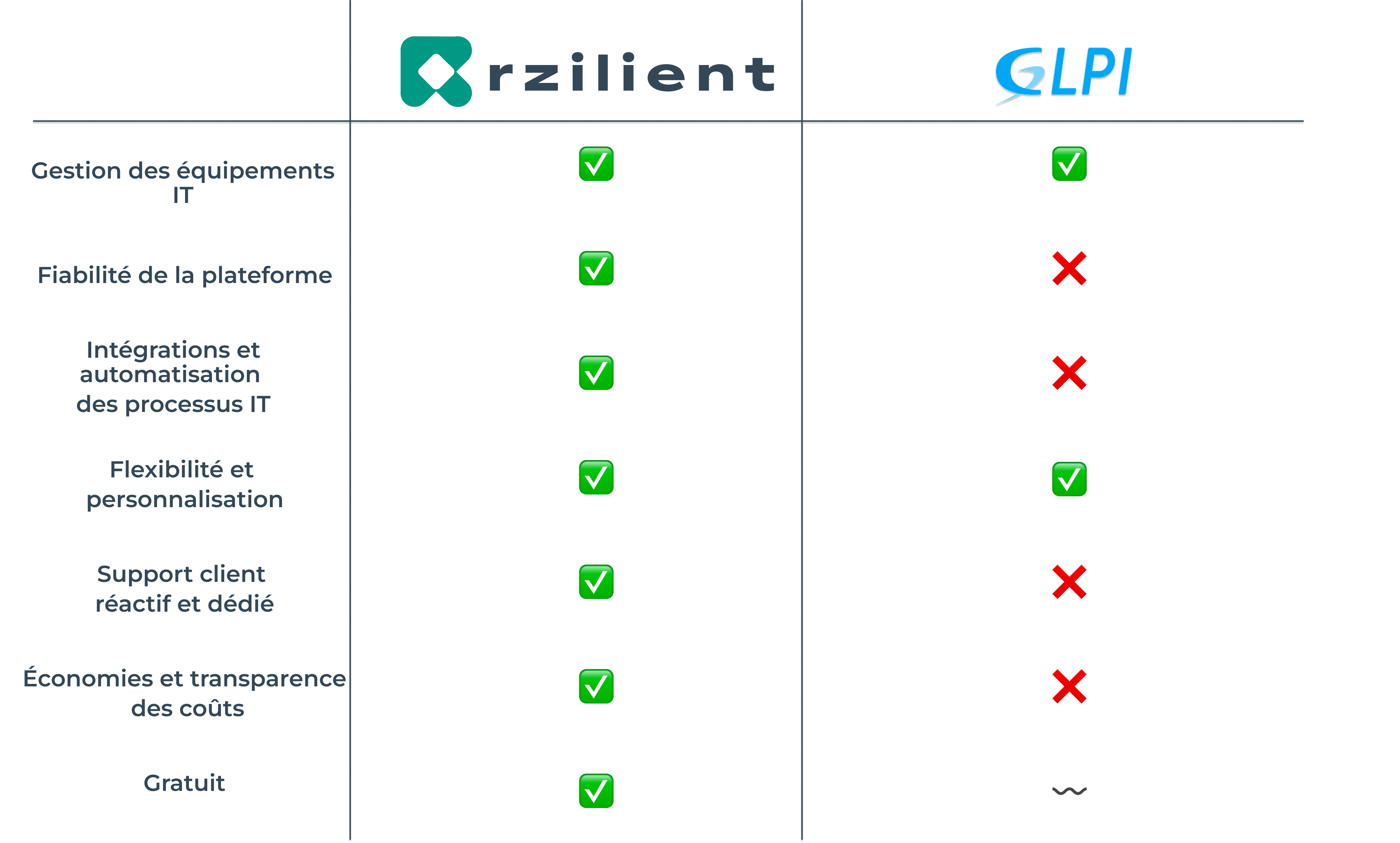 Choosing the right IT solution can transform the way your business manages day-to-day operations, optimizes costs and ensures data security.GLPI and rzilient, are two solutions that allow you to centralize your IT assets, but with varying degrees of functionality. We've benchmarked them for you and explain the main differences between the two solutions.