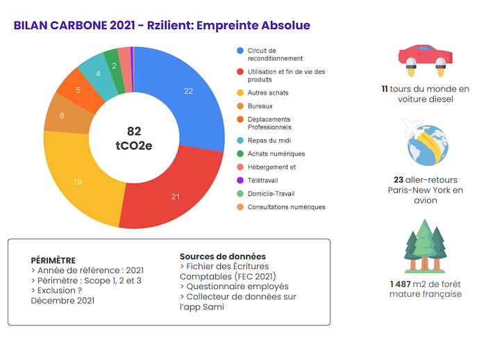 Following our signature of the Climate Act - along with our fellow companies aKagreen, Backmarket and Vendredi - we have embarked on our first carbon assessment at the end of 2021 with the aim of eventually reducing our footprint. Indeed, "every company must know its carbon footprint to be able to limit it efficiently". Although Rzilient's footprint is small compared to Amazon's or Microsoft's, every agent and economic actor must do their part.